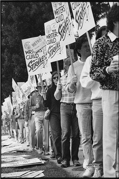 Oscar-winners on the picket line during the 1981 writers’ strike1981 – The Guild struck for 13 weeks. Gains included terms for made-for-pay television programs. Terms for reuse of television programs on nascent basic cable channels were changed from fixed residuals to 1.2% of distributor’s gross receipts.