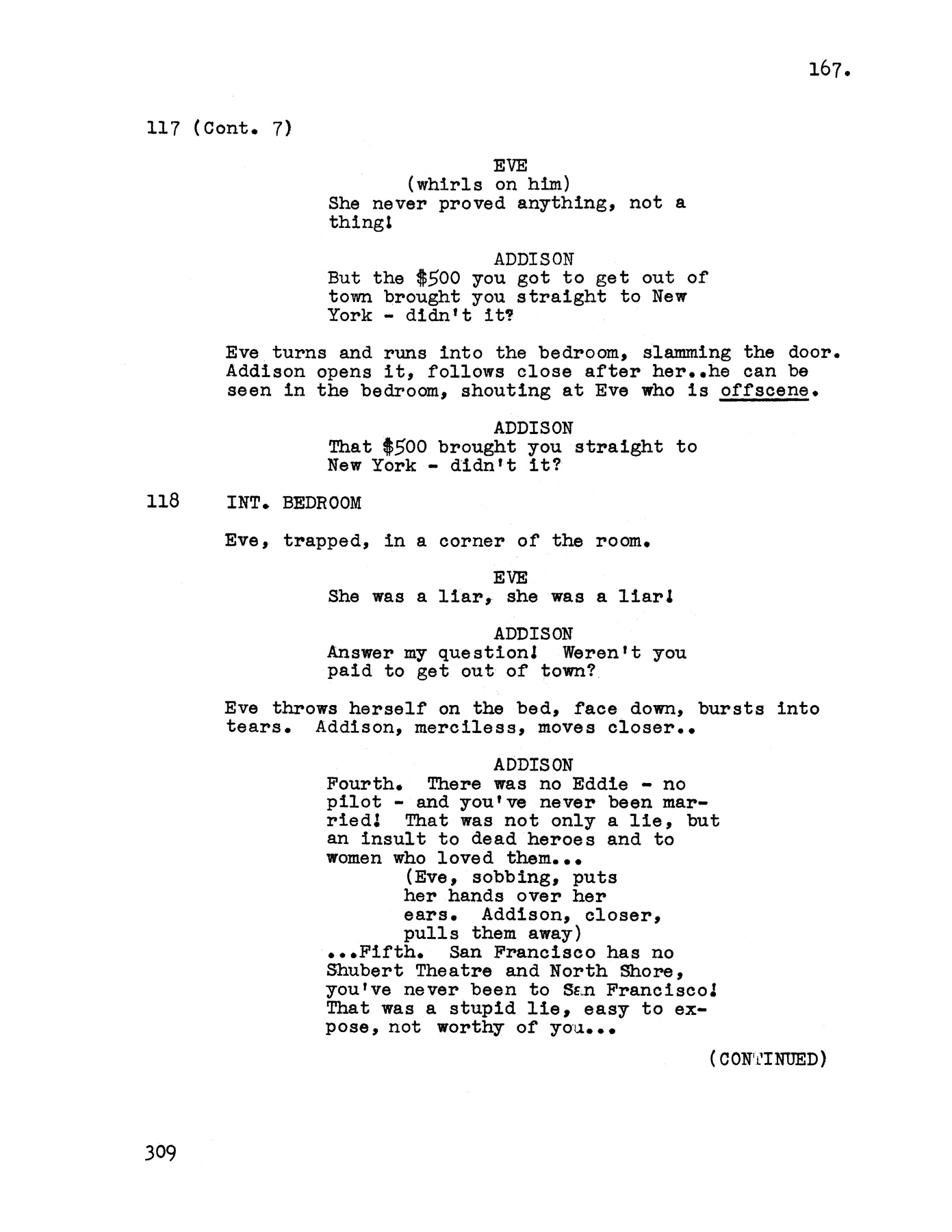 - Mankiewicz had been forewarned that Davis sometimes changed dialogue, but, he said later, " not one syllable is different on the screen than in the screenplay."